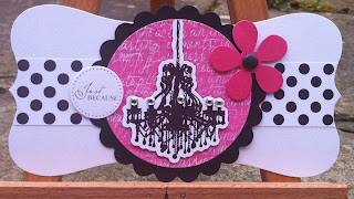 I used 148mm square Back to Basics blank for this. The circle was cut using a Nestabilities Die. I still really like the Très Chic papers and the black and hot pink colour combination.